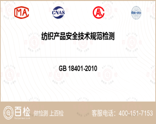 紡織產(chǎn)品安全技術(shù)規(guī)范檢測項目詳情1、紡織產(chǎn)品安全技術(shù)規(guī)范GB 18401-2010---服裝紡織品通用要求紡織產(chǎn)品安全技術(shù)規(guī)范項目檢測